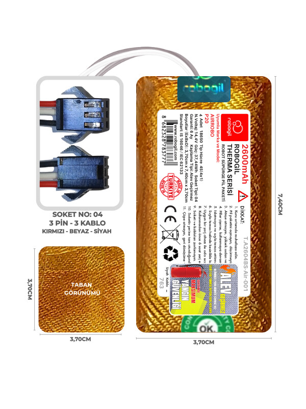 Amarey A800 2600mAh Pili Therma Serisi Alev Geçirmez Kaplamalı Uyumlu Robot Süpürge Bataryası T.A2603BS-Ama-001 Sıra:613